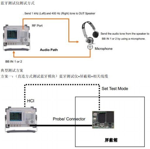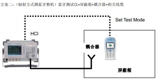 測(cè)試配置:藍(lán)牙測(cè)試儀+屏蔽箱+耦合板+射頻線